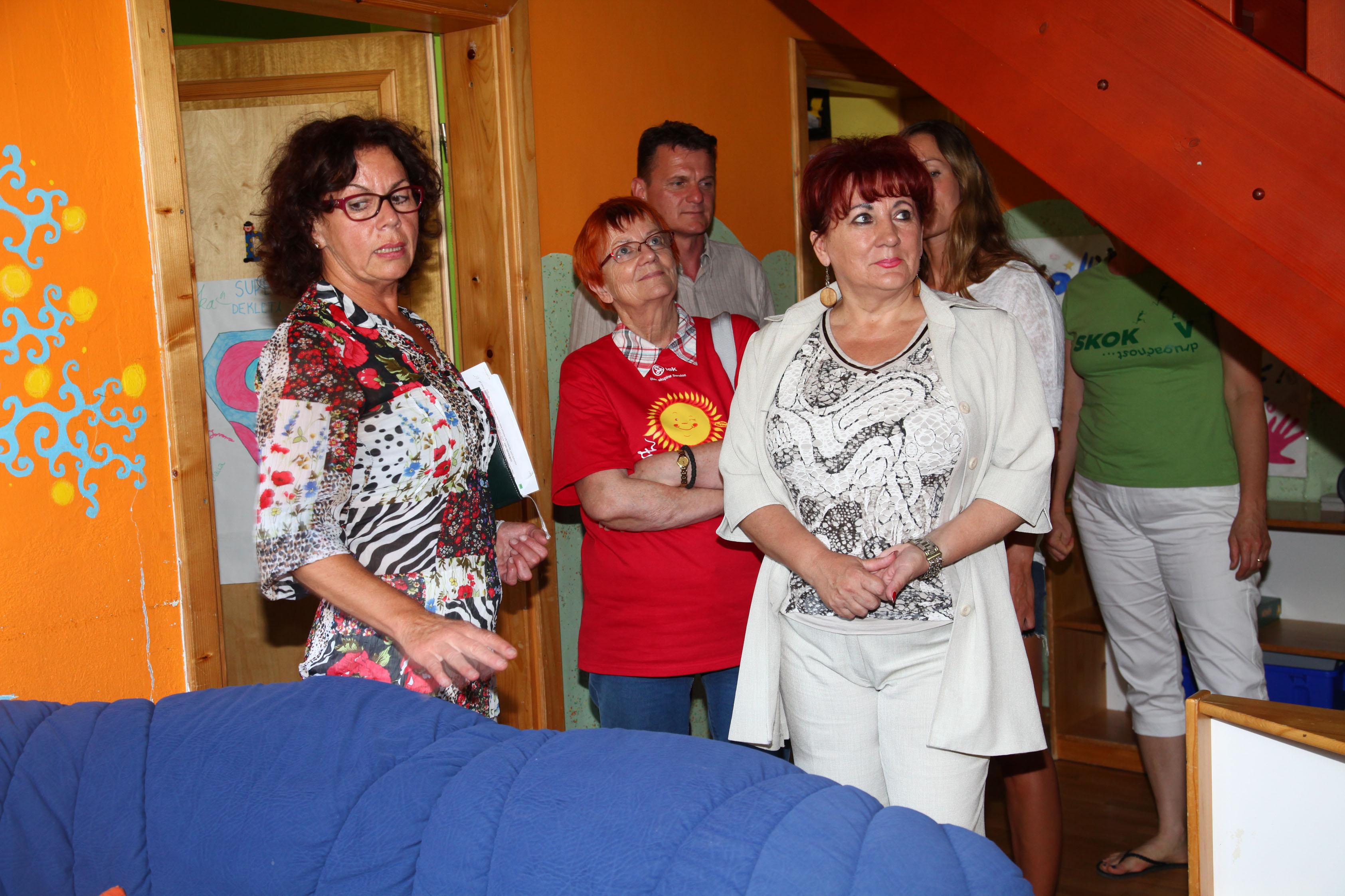 Varuhinja človekovih pravic med ogledom prijetno urejenih sob v počitniškem domu Vila v Kranjski Gori.