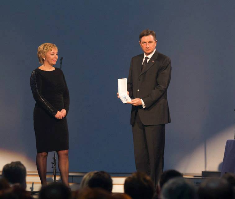 Predsednik Republike Slovenije, Borut Pahor, predaja državno odlikovanje predsednici ZPMS, Darji Groznik.