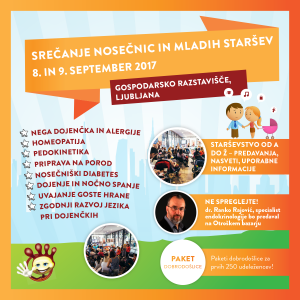 Že četrtič bo na Otroškem bazarju potekalo dvodnevno Srečanje nosečnic in mladih staršev, ki bo potekalo v petek in soboto, 8. in 9. septembra. Namen srečanja je na enem mestu odgovoriti na čim več vprašanj, s katerimi se srečujejo mladi starši in vsi, ki bodo to še postali. Številni strokovnjaki bodo predavali na temo priprave na porod in uspešnega dojenja, sočutnega starševstva, uvajanja goste hrane in prehranskega načrta, dojenja, spanja in nošenja dojenčka ter še veliko drugega. V okviru srečanja bomo na Otroškem bazarju gostili tudi dr. Ranka Rajovića, specialista endokrinologije. Rajović je avtor prilagojenega programa za vrtce in šole, imenovanega sistem NTC. Na predavanju bo predstavil NTC sistem, sistem, ki spodbuja otrokovo razmišljanja in pridobivanja uporabnega znanja. Razložil bo, kako lahko učenje poteka skozi igro. NTC sistem je razširjen že v sedemnajstih evropskih državah, od 1. 10. pa bo potekal tudi v Ljubljani. Predstavil bo, kako bo sistem NTC pod njegovim okriljem in v sodelovanju z Živo Ribičič in vrtcem Modra pikica; HIša otrok Bežigrad deloval v Ljubljani.