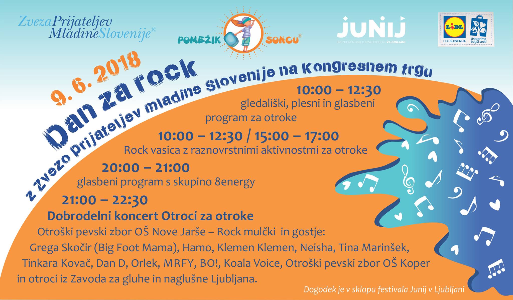 V sklopu festivala Junij, na Kongresnem trgu v Ljubljani, v soboto, 9. junija, prirejamo celodnevno dogajanje, imenovano Dan za rock.