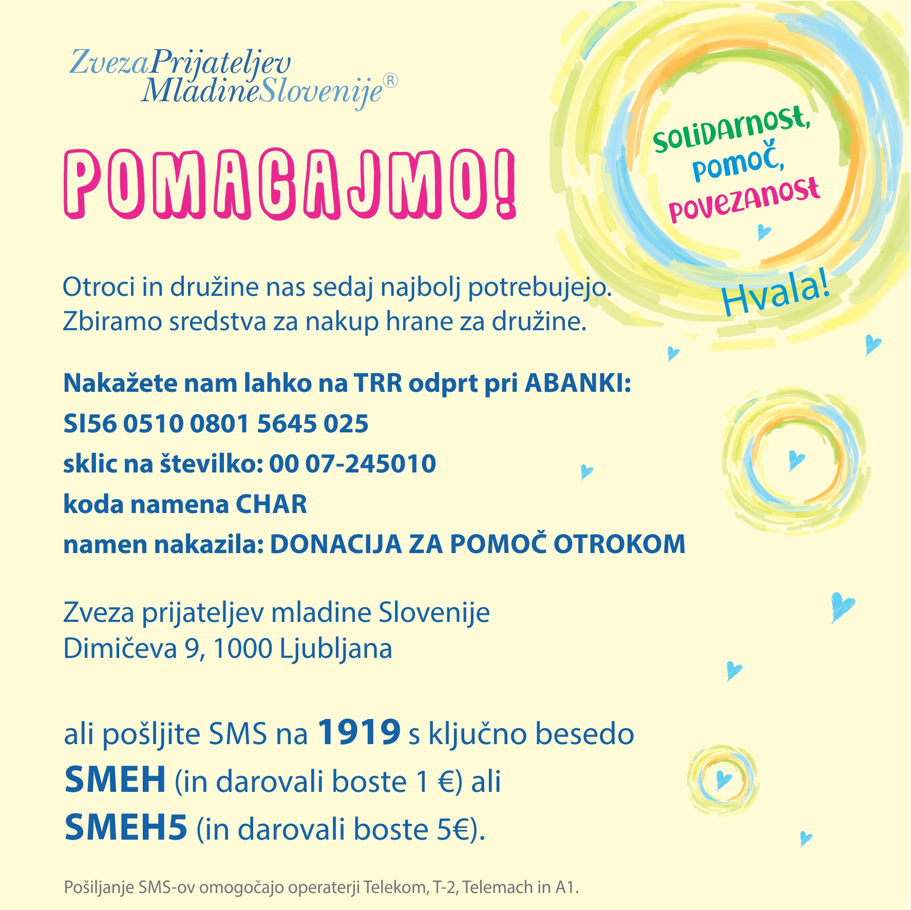 Pojav epidemije nas je po eni strani močno razdvojil, po drugi strani pa kriza kriči po solidarnosti, povezovanju in pomoči. V Zvezi prijateljev mladine Slovenije opažamo, da se od svojega obstoja, torej od leta 1953, kar skrbimo za otroke, mladostnike in družine v stiski, s tako hudo humanitarno stisko še nismo srečali. In kot kaže, nas najodgovornejše in težko delo – celovita skrb za najranljivejše, naše otroke – še čaka. Zagotovo bo uspešnost pomoči v veliki meri odvisna od vseh nas, ki lahko pomagamo.