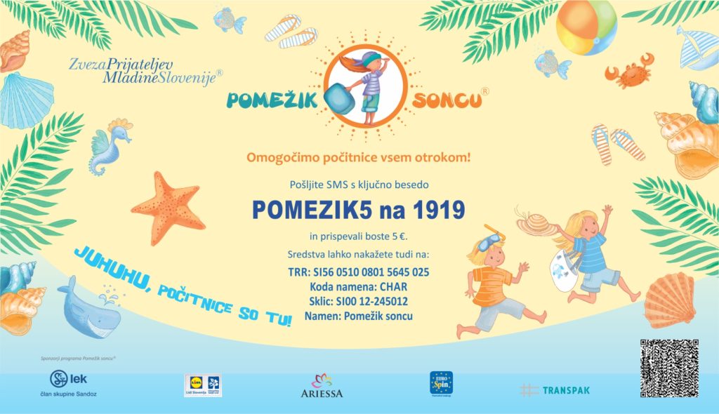 Pomežik soncu® je akcija, s katero želimo pri Zvezi prijateljev mladine Slovenije čim večjemu številu otrok zagotoviti brezplačne počitnice. Program letos praznuje že 21 let. V lanskem letu smo na počitnice peljali rekordnih 11.838 otrokom. Številka je velika, žal pa je še vedno velika tudi številka otrok, ki živi pod pragom revščine. Kljub temu smo veseli, da bodo otroci lahko šli na letovanja tudi letos in upamo, da bomo za njih zbrali čim več sredstev. Letošnje počitnice bodo za otroke še posebej dragocene!