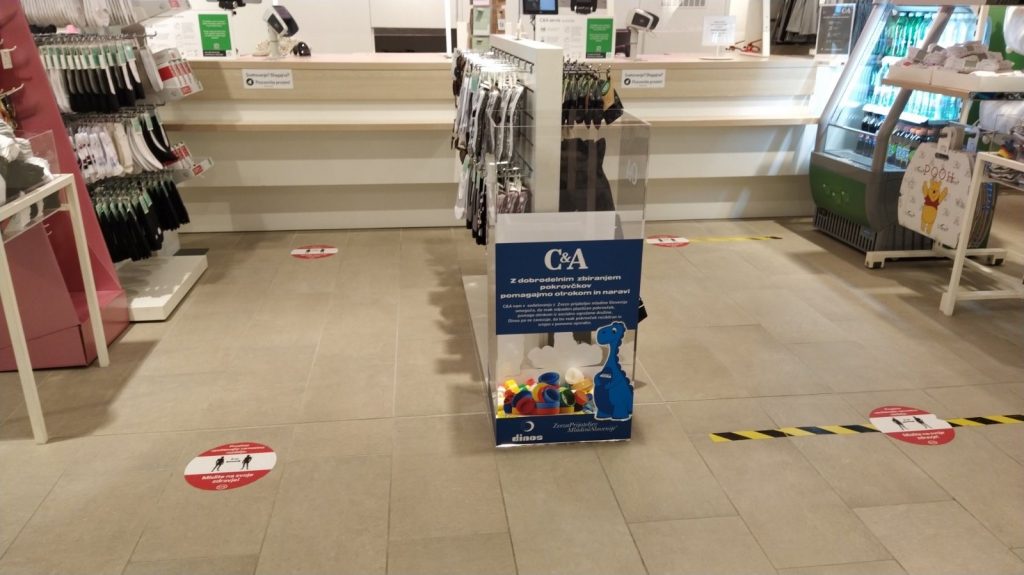 2. Tudi v prodajalnah C&A so postavljeni označeni zabojniki, kamor lahko odnesete zbrane zamaške.