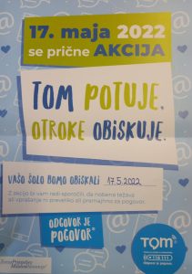 ki ga praznujemo 17. maja, začeli z vseslovensko akcijo TOM POTUJE, OTROKE OBISKUJE. Tom nahrbtnik potuje po 12-tih slovenskih regijah in obiskuje osnovne šole. Vsaka šola, ki se vključi, v razredih od 4. do 9. razreda izvede delavnico o TOM telefonu.