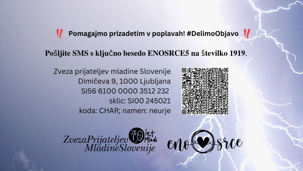 v teh težkih časih se na Zvezo prijateljev mladine Slovenije in njenih 112 članic po vsej Sloveniji že obrača veliko prizadetih ljudi. Še več prošenj pa pričakujemo v naslednjih dneh. Ljudje potrebujejo pomoč, saj so se znašli v velikih stiskah, ko se celotna Slovenija sooča s hudo naravno nesrečo – poplavami, ki so prizadele mnoge družine in povzročile nepredstavljive težave in škode.