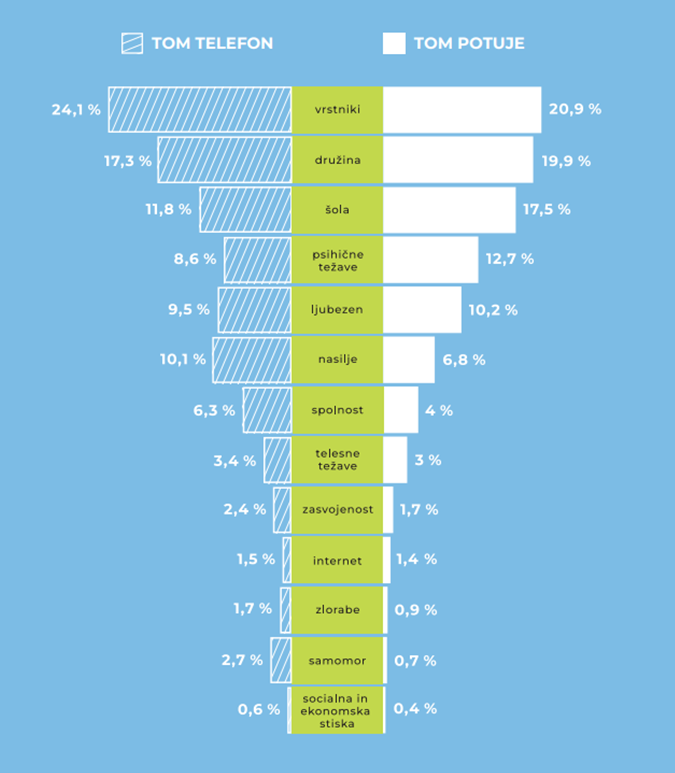 Otroci in mladostniki se na TOM telefon največkrat obrnejo zaradi tem, povezanih z vrstniki. Da jim ravno odnosi z vrstniki povzročajo največ izzivov in skrbi, pa se je izkazalo tudi v akciji TOM potuje.