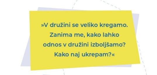 TOM POTUJE: Več kot polovica zapisov v kategoriji Družina je bila vezana na težave v odnosu s starši. Otrokom je pomembno, da se doma čutijo sprejete, vredne in da imajo dober odnos s starši. Zanima jih, kako vzpostaviti boljši odnos s starši in kako se pogovarjati z njimi, saj kljub želji po pogovoru s starši večkrat ne najdejo besed oz. se bojijo z njimi spregovoriti o določenih temah. Učenci so pisali tudi o težavah, ki jih prinašajo neurejeni odnosi med staršema. Ni pa bilo zaznati toliko zapisov glede nasilja v družini, kot se s to problematiko obračajo na TOM telefon.