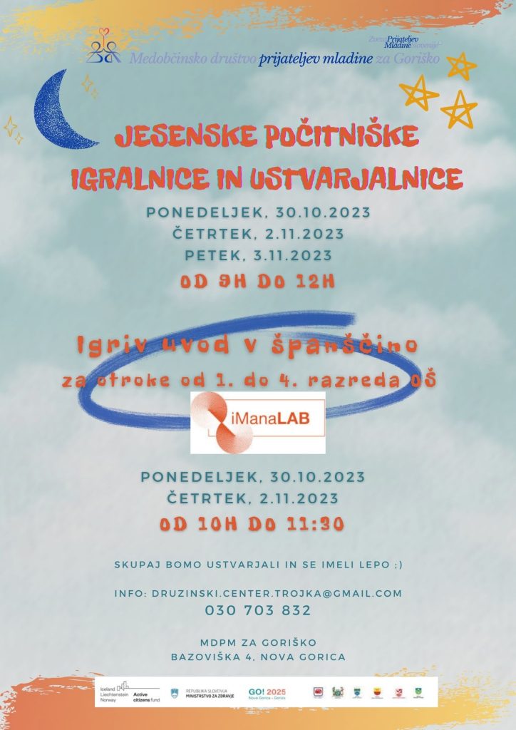 Naziv jesenskega programa: JESENSKE POČITNIŠKE DELAVNICE in IGRIV UVOD V ŠPANŠČINO Z iManaLAB