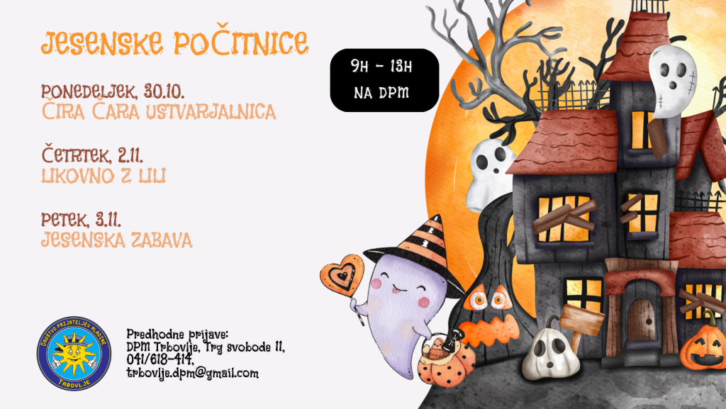 V Društvu prijateljev mladine Trbovlje smo pripravili pester Jesenski program, ki bo vključeval različne dejavnosti, delavnice in zabavo za otroke.