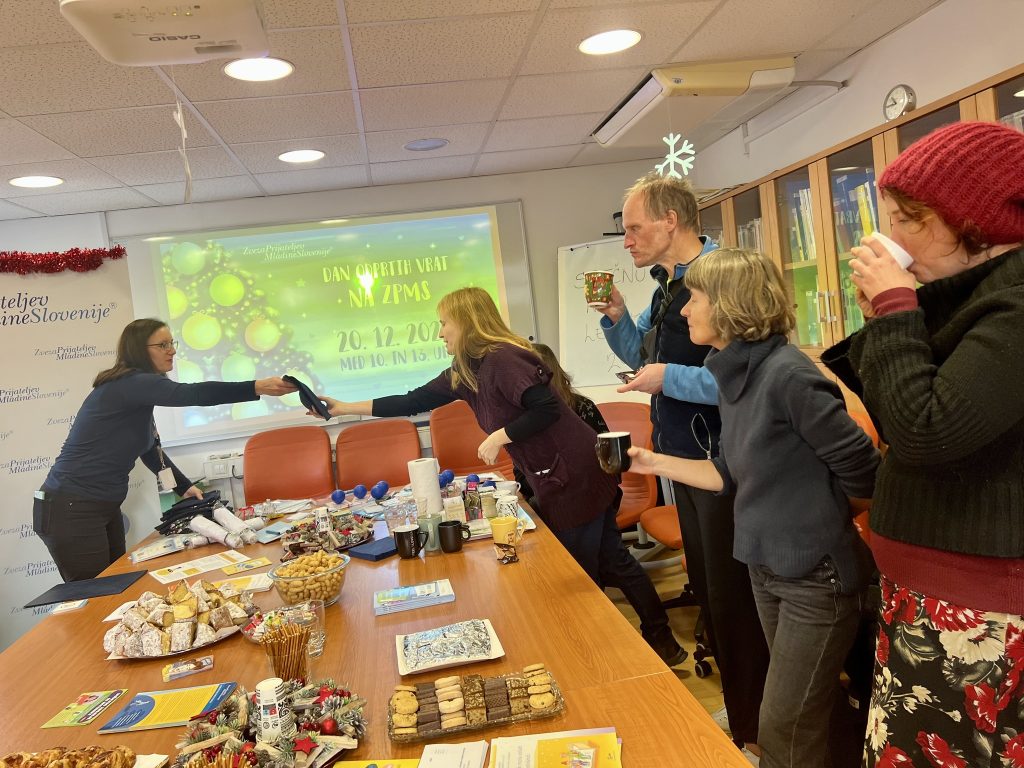 Včeraj 20. decembra, smo na našem naslovu, Dimičeva ulica 9 odprli vrata naše Zveze prijateljev mladine Slovenije. Presenetilo nas je, kako se je prostor nenehno napolnjeval s srci ljudi, ki so prišli od daleč, da bi nam polepšali dan s svojim prisrčnim prihodom.