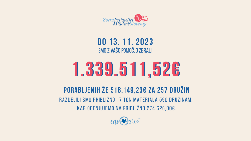Uspešno zbiranje sredstev za pomoč družinam: Zbrali smo 1.339.511,52€ do 13. 11. 2023