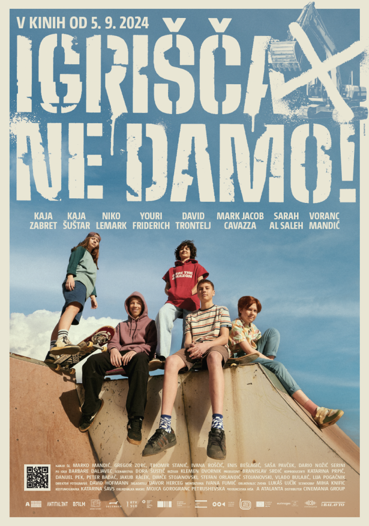 5. septembra v slovenske kinematofrage prihaja filmska zgodba Igrišča ne damo!, ki govori o mladih aktivistih. 12-letna Alma se z očetom preseli v novo sosesko v Ljubljani, ki je skejtarsko “gnezdo” sošolke Lune. Dekleti se na začetku ne razumeta najbolje, obenem pa se napetosti v njujem odnosu vse bolj stopnjujejo. Ko Alma izve, da bo gradbeno podjetje, kjer je zaposlen tudi njen oče, porušilo igrišče z zelenimi površinami in bo namesto tega zgradilo ogromno parkirišče, se v njej zbudi borbeni duh. Boj za igrišče, drevesa in čisti zrak jo poveže z Luno in njeno družbo. Druščina ima le teden dni, da reši igrišče. Njihov moto je: “Kdor zafrkne – naj crkne!”V novem otroškem filmu blestijo nadarjene mladenke in mladeniči, prav tako pa ne manjka znanih obrazov filmskega in glasbenega sveta. Med njimi so Marko Mandić, Gregor Zorc, Tihomir Stanić, Ivana Roščić, Enis Bešlagić, Saša Pavček, Voranc Mandić, Sarah Al Saleh, Mark Jacob Cavazza in Dario Nožič Serini.