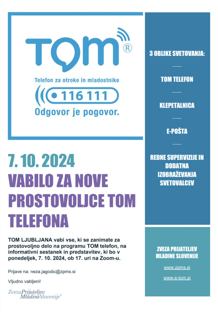 Za več informacij in prijavo na sestanek nas kontaktirajte na neza.jagodic@zpms.si ali obiščite našo spletno stran Tom telefona.