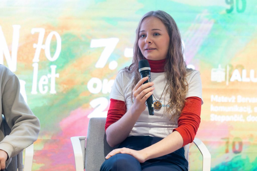 - Nika Gradišek, študentka in avtorica letošnje poslanice ob Tednu otroka®, je delila svoja razmišljanja o pomenu empatije in solidarnosti za prihodnje generacije: “Odraščati je vedno težko, odraščati v dobre ljudi še težje. V svetu, kjer družbene neenakosti, globalni konflikti in podnebna kriza ves čas trkajo na naša vrata, je apatija lahko nevarno mamljiva. Ko pišemo po listu naše prihodnosti, otrocih, je zato ključno, da jih opremljamo z veščinami za svet, v katerega vstopajo; z veščinami empatije, solidarnosti in grajenja skupnosti.”