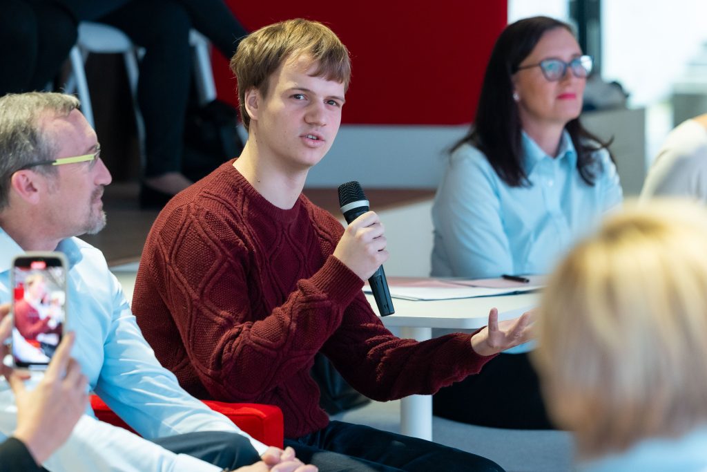 - Jakob Jurca Sinkovič, dijak in nekdanji mladi parlamentarec, je izpostavil izzive in priložnosti današnje mladine v dobi tehnologije: “V današnjem času imamo mladi večji dostop do tehnologije in posledično tudi informacij. Priročno je, da ni treba iti po vsak odgovor v knjižnico po knjigo, ampak samo vtipkamo besedo v brskalnik in v nekaj sekundah dobimo odgovor. Pred tridesetimi leti so mladi preživeli več kvalitetnega časa zunaj skupaj in niso bili v svoji sobi priklopljeni na alternativno resničnost, v kateri je vse po njihovih željah. Potem pa v resničnem svetu lahko pride do težav z dojemanjem sebe, okolice, doseganjem ciljev in sprejemanjem drugačnosti.”