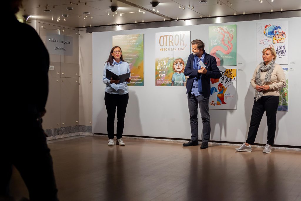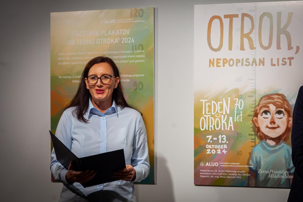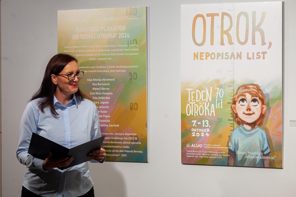 Včeraj, 7. oktobra, smo bili v prvi pasaži (Europlakat) Cankarjevega doma priča otvoritvi razstave idejnih rešitev (plakatov) za Teden otroka®. Enajst študentov 3. letnika ALUO, smer Oblikovanje vizualnih komunikacij – Ilustracija, je predstavilo svoje domiselne plakate. Dela so nastala pod vodstvom mentorjev doc. Damijana Stepančiča in doc. mag. Marije Nabernik v VI. sfemestru študijskega leta 2023/24. Dogodek sta s pozdravnimi nagovori otvorila Darja Groznik, predsednica ZPMS, in prof. Alen Ožbolt, dekan ALUO.