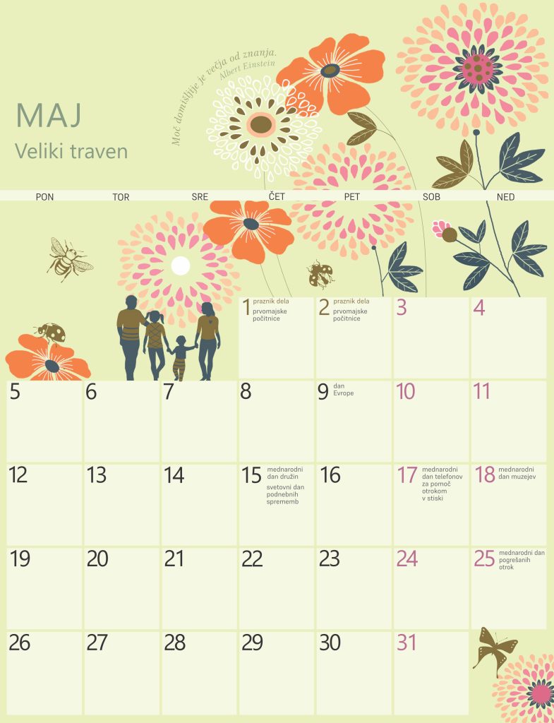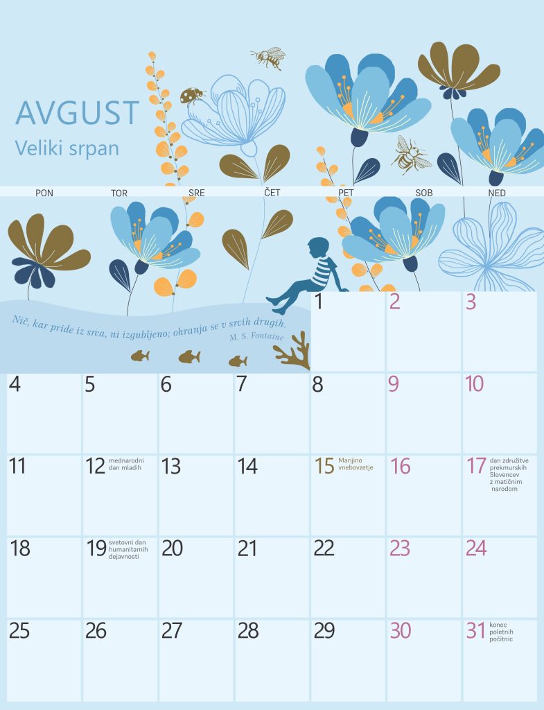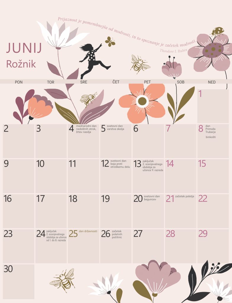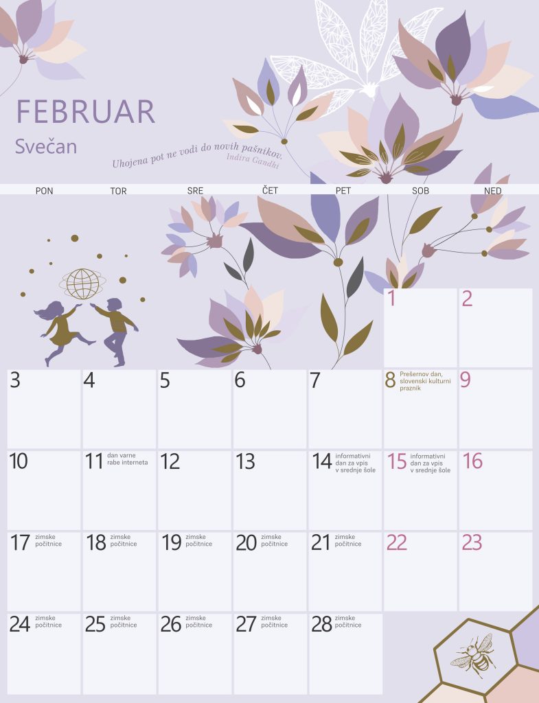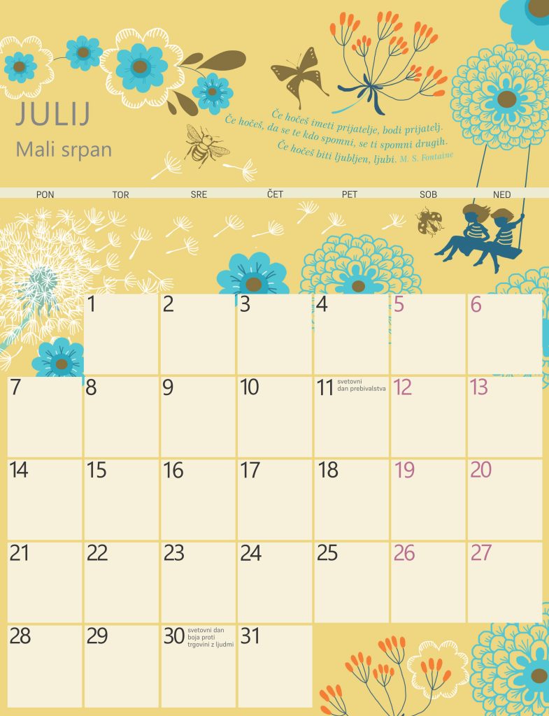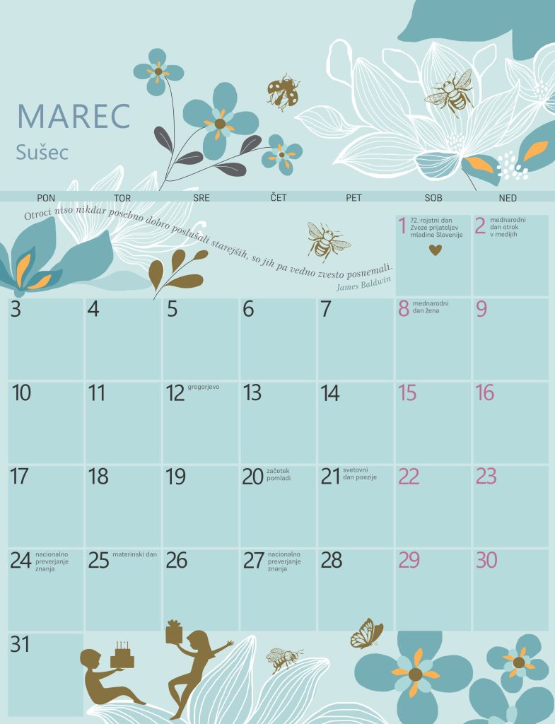 Posebna gostja letošnjega koledarja pa je – zlata čebelica. V vsakem mesecu se med rožicami nežno “sprehaja” čebelica, ki prinaša zlate trenutke v naš vsakdan. Ta drobna spremljevalka simbolizira marljivost, trdoživost, toplino in skrbnost, ki jo vnašamo v naše poslanstvo – izboljšanje kakovosti življenja otrok in družin.