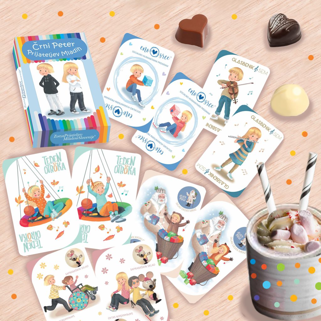Karte Črni Peter, ustvarjene pod okriljem Zveze prijateljev mladine Slovenije, prinašajo smeh, sproščene trenutke in priložnost za povezovanje med otroki in odraslimi. Obenem na igriv način predstavljajo programe, kot so Teden otroka®, Otroški parlamenti® in Pomežik soncu®.