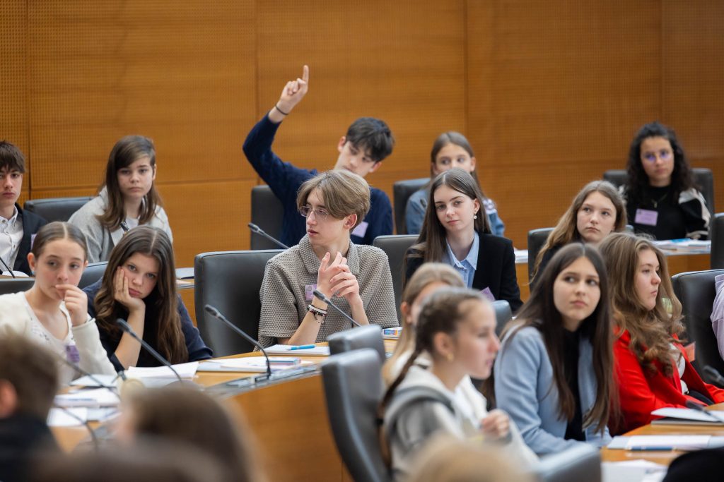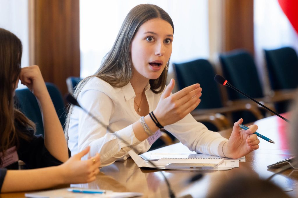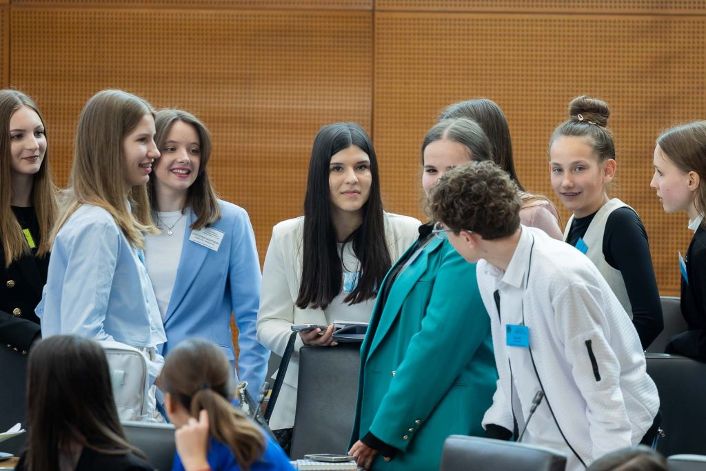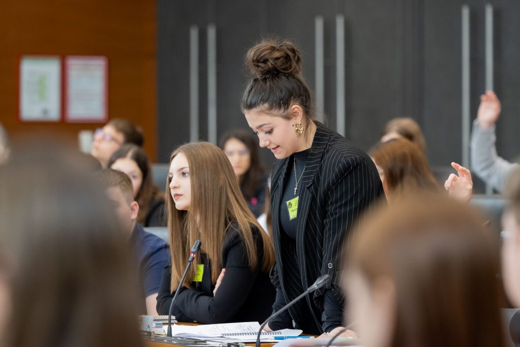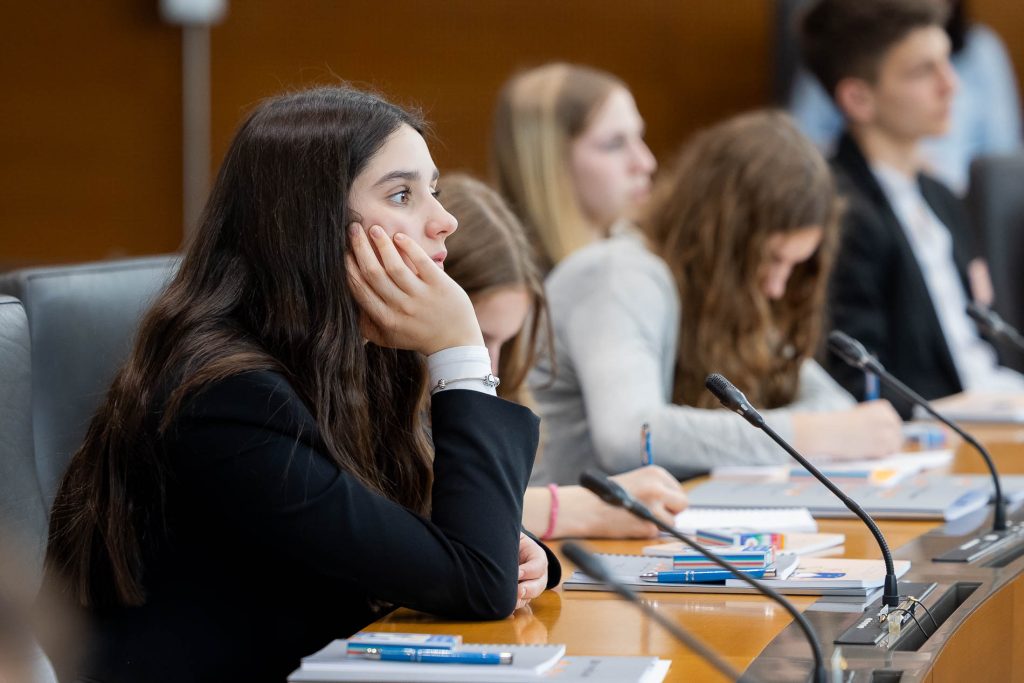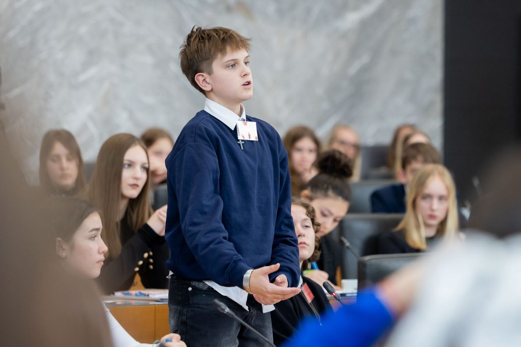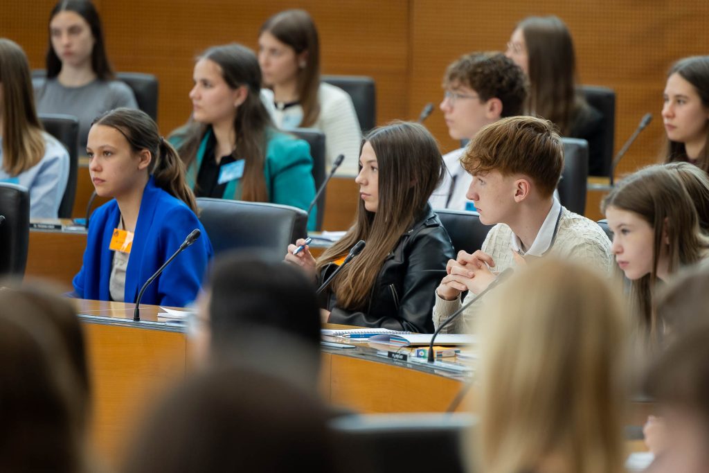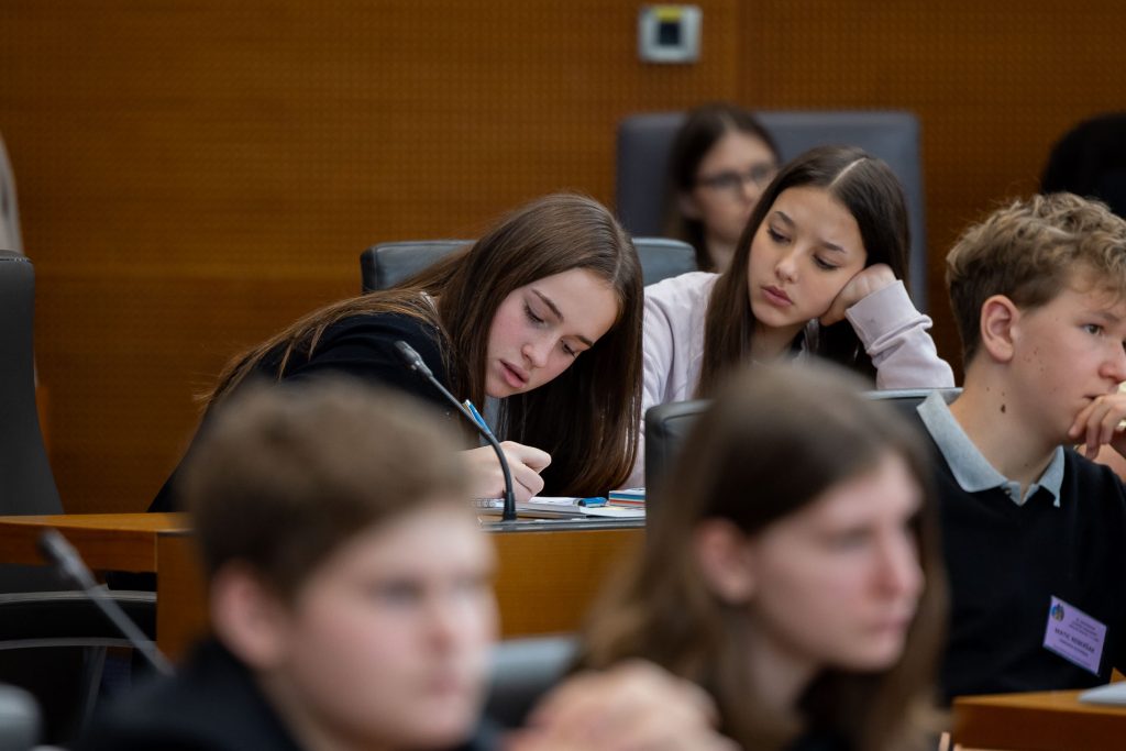 Po uvodnih nagovorih so mladi parlamentarci v skupinah razpravljali o štirih podtemah znotraj naslovne teme. Pred začetkom glavne razprave so poročevalci skupin predstavili ugotovite mladih.