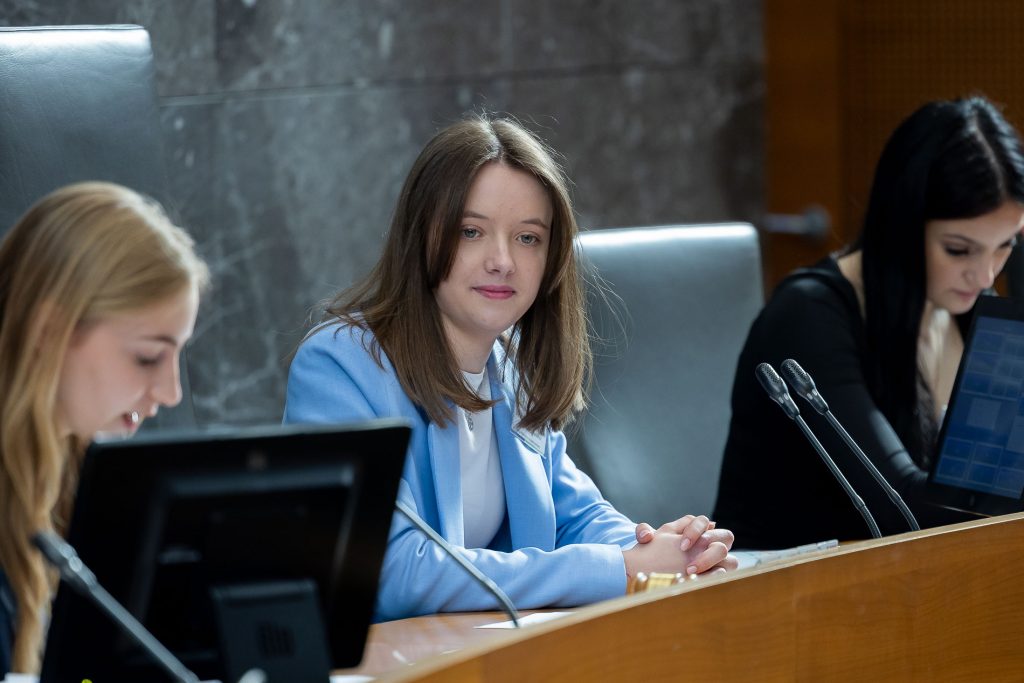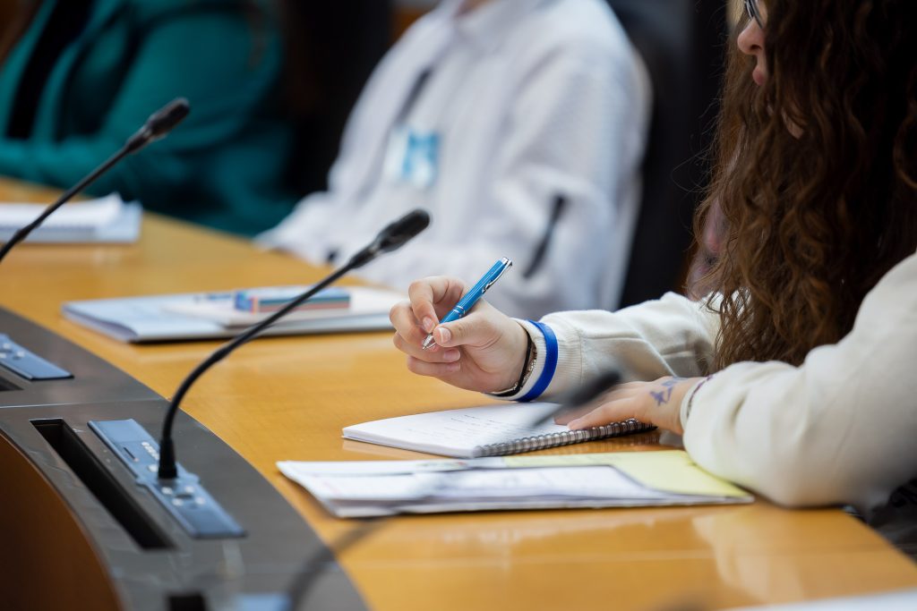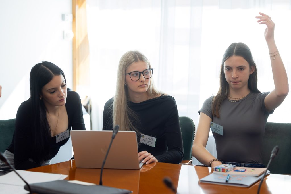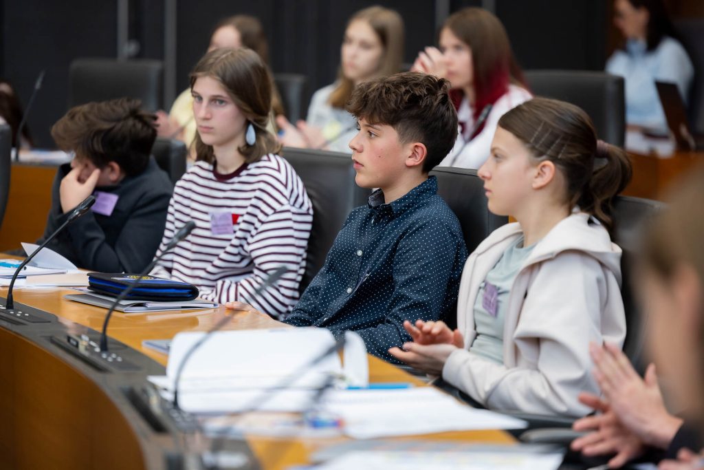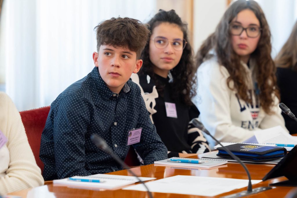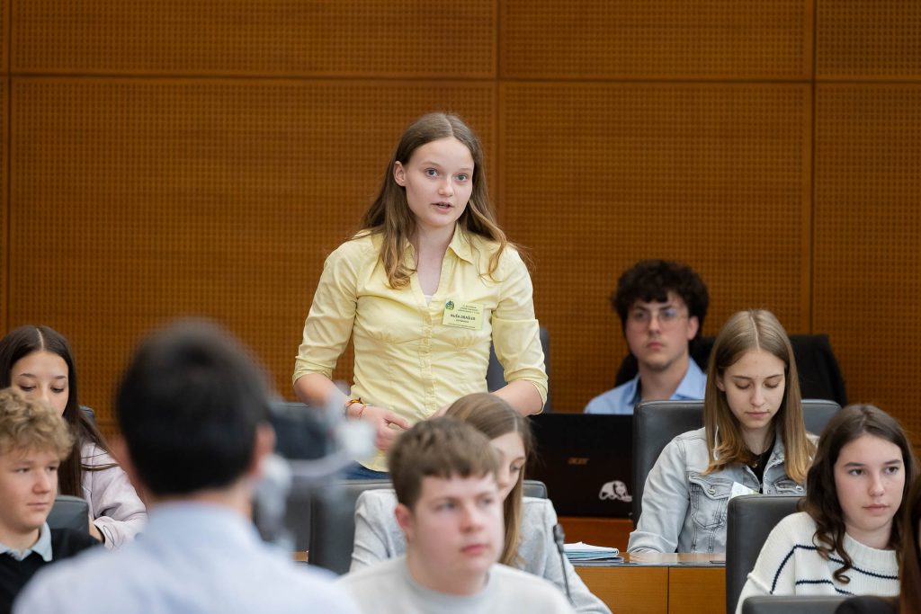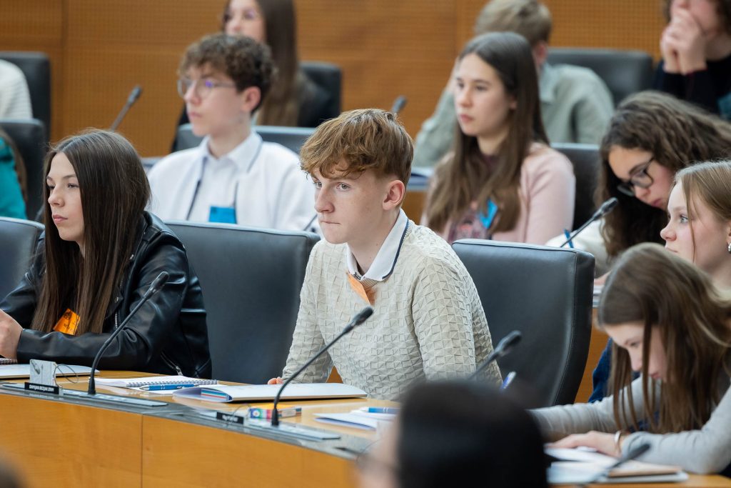 Po uvodnih nagovorih so mladi parlamentarci v skupinah razpravljali o štirih podtemah znotraj naslovne teme. Pred začetkom glavne razprave so poročevalci skupin predstavili ugotovite mladih.