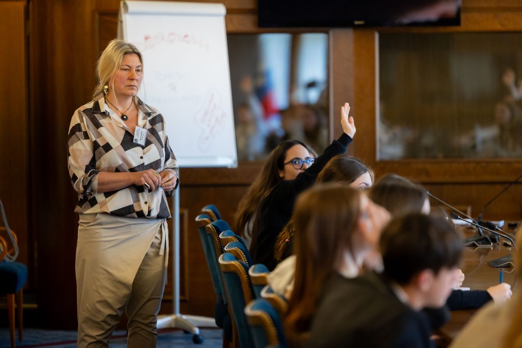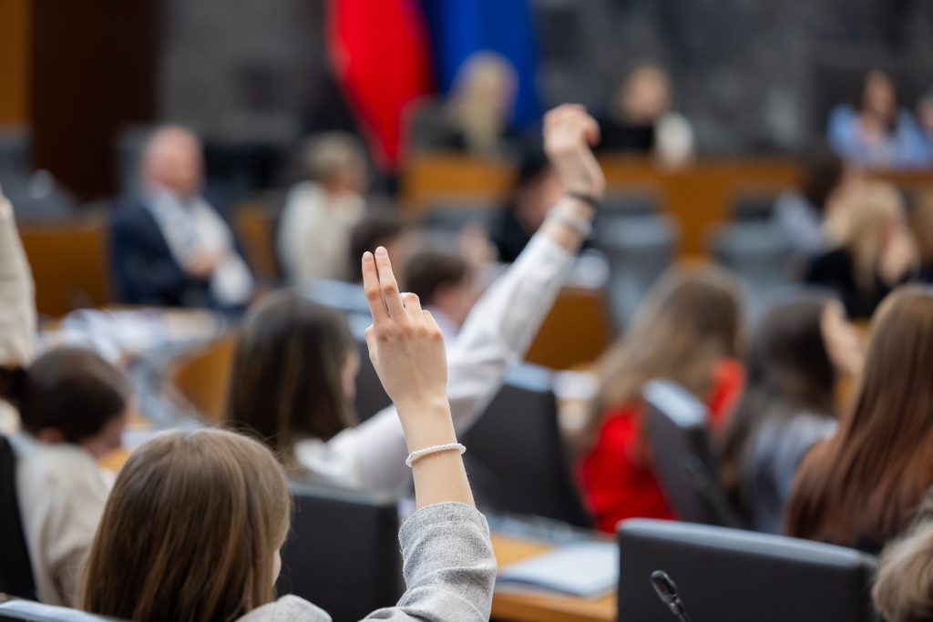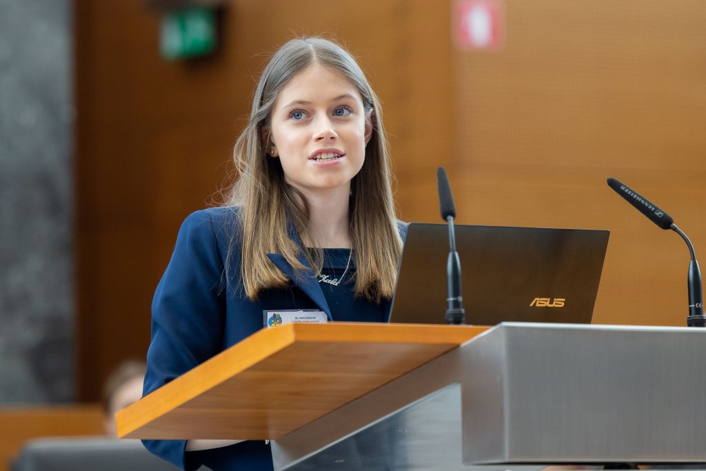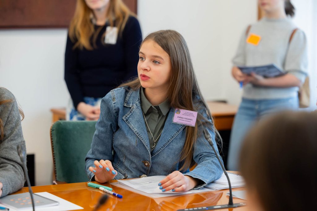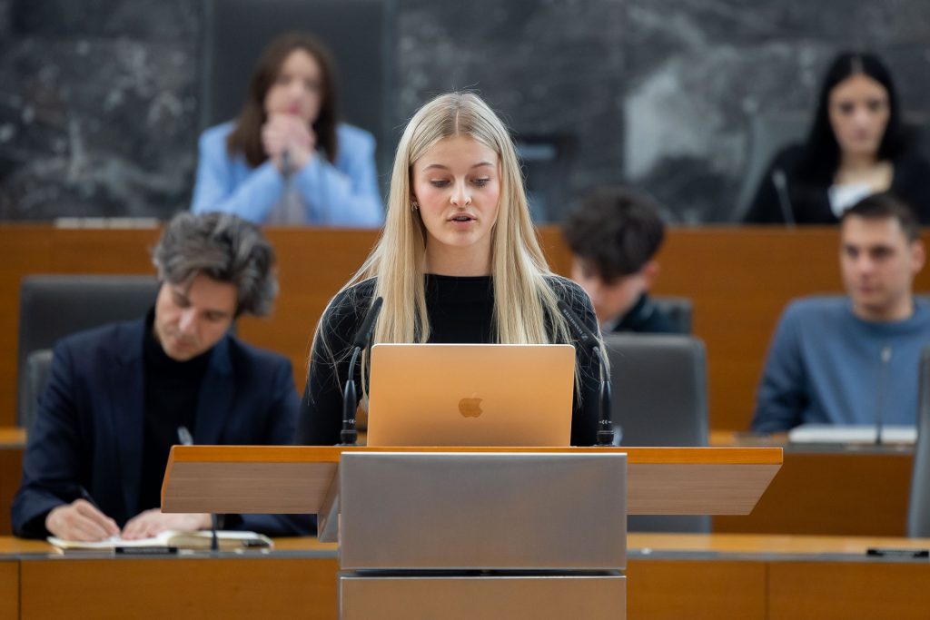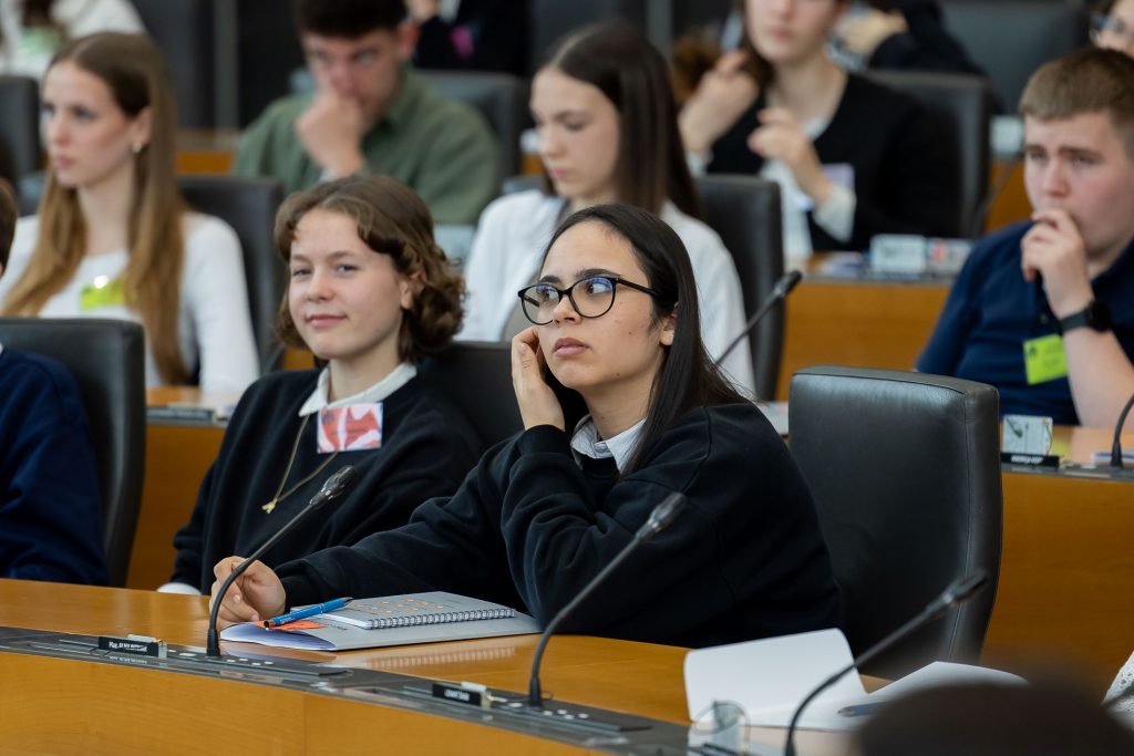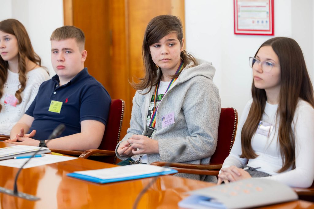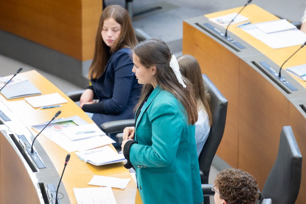 Po uvodnih nagovorih so mladi parlamentarci v skupinah razpravljali o štirih podtemah znotraj naslovne teme. Pred začetkom glavne razprave so poročevalci skupin predstavili ugotovite mladih.