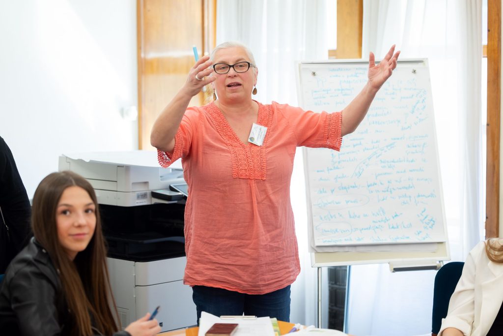 Poročevalka skupine Sara: Dotaknili smo se oseb na šoli, ki so nam najbolj všeč in jim najbolj zaupamo. Prišli smo do zaključkov, da so to tiste osebe, ki imajo vrednote: marljivost, poslušnost, spodbudnost, trud, se posvečajo svojim učencem in drugim. Cenimo, če nam dajo učitelji veliko vaj, poskušajo izvajati pouk na drugačen način, izvajajo dopolnilni pouk, iščejo potenciale v nas, izvajajo skupinsko delo. Zato: želimo si več aktivnega pouka; želimo si vedeti dejanski cilj šolske ure; med urami bi radi več ponavljali, da snov bolje razumemo, ker dobimo prevelike količine snovi, potem moramo ogromno delati še doma; menimo, da bi morali predmete in snovi tudi bolj povezovati med sabo. Vključevati bi morali vse učne metode, ker smo si različni, v pouk moramo vključevati več eksperimentalnega dela, več slikovnega gradiva. Želimo si tudi, da bi učitelji spodbujali medvrstniško delo/pomoč. Imeli bi več projektnih del. V pouk bi vkomponirali tudi več tehnologije in imeli bi predmete, ki bi nas učili delati z njo. Opažamo, da se veliko profesorjev s tehnologijo ne znajde! Želimo si tudi, da bi se reformiral študij učiteljev. Želimo si tudi več praktičnih predmetov: prva pomoč, finance … Želimo si manj podatkovnega znanj in več vsebinskega. Posnemajmo dobre prakse šol iz tujine. Opažamo, da se veliko praktičnega pouka konča v nižjih razredih osnovne šole. Želimo si pravičnejši sistem ocenjevanja. Želimo si tudi bolj pravičen sistem za pridobitev statusa, npr. status športnika in status umetnika. Potrebujemo več šole za življenje. Saj se, ko pridemo iz šolskih klopi, ne znajdemo v različnih življenjskih situacijah. Želimo si, da bi se pri oblikovanju reform, ki se tičejo mladih, upoštevalo nas – mlade.