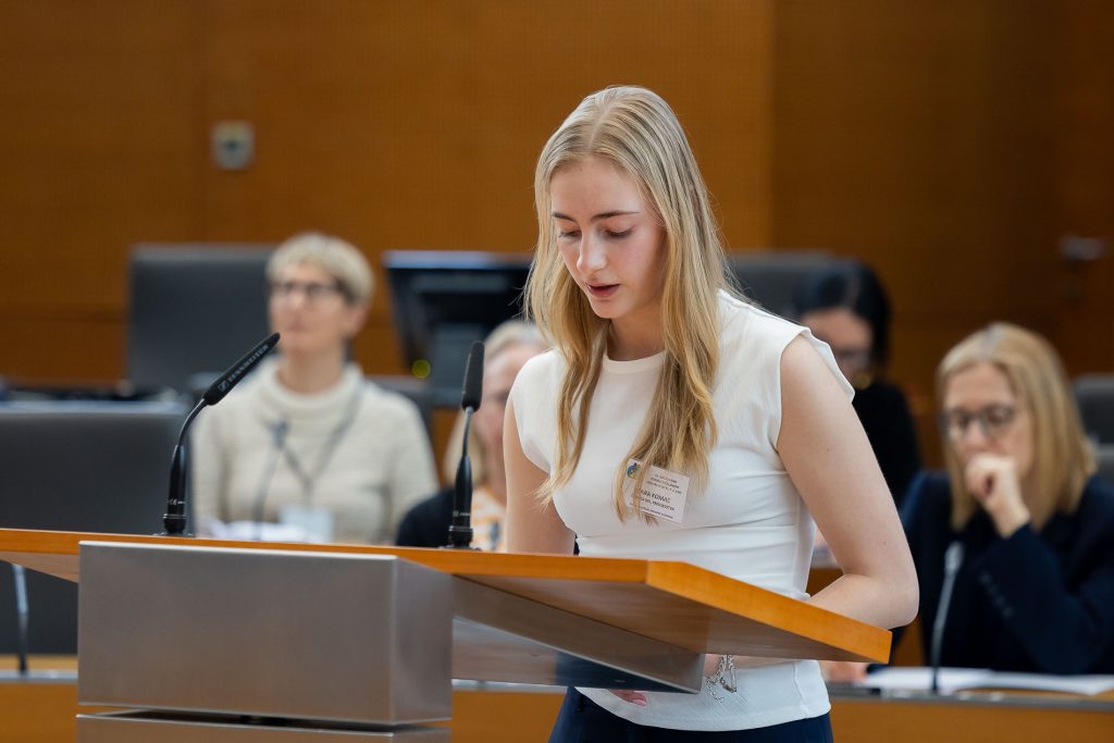 mag. Urška Klakočar Zupančič: »Dobrodošli tudi letos v Državnem zboru. Tema, ki ste si jo izbrali za razpravo, je gotovo med tistimi najpomembnejšimi na vaši poti v odraščanje. Šolski sistem mora biti trdna podlaga, ki vam vsem in vsakemu posamezniku omogoča trdne temelje, na podlagi katerih lahko razvijate svoje potenciale. Šolski sistem, po mojem trdnem prepričanju, tudi ne more biti reduciran le na polnjenje mladih možganov z informacijami in podatki. Zato šolskega sistema ne moremo urejati samo odrasli, saj ste prav vi tisti, ki najbolj občutite vse dobre in slabe plati delovanja sistema. Kot predsednica Državnega zbora bom naredila vse, kar je v moji moči in pristojnosti, da bodo tudi vaše letošnje razprave in sklepi v tem visokem domu slišane in upoštevane. Verjamem tudi, da sem te besede izrekla tudi v imenu vseh mojih kolegic in kolegov poslancev.”