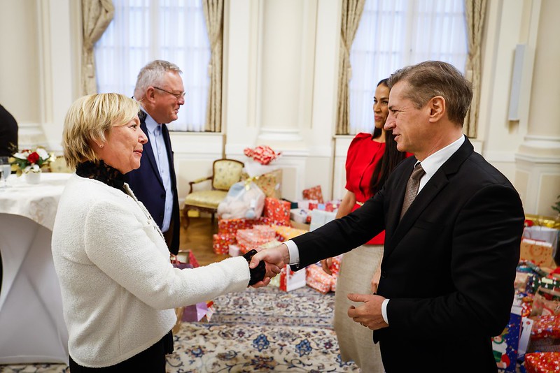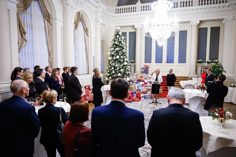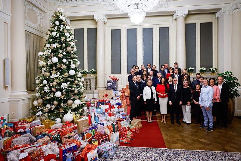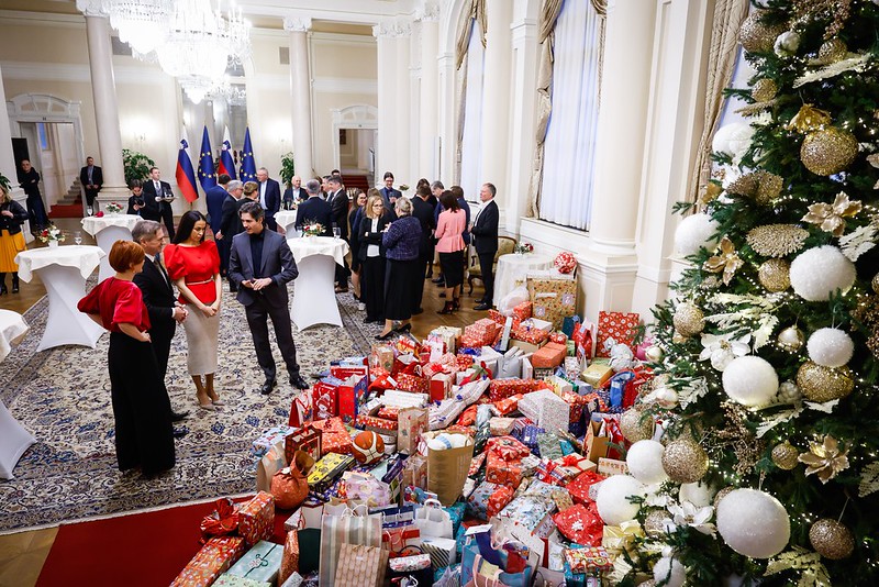 Predsednik vlade dr. Robert Golob je danes s soprogo Tino Gaber Golob priredil prednovoletni dobrodelni sprejem.