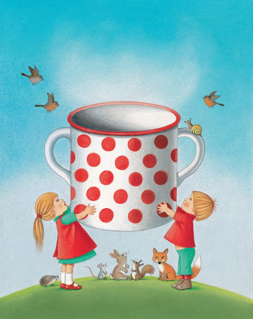 Gre za ilustracijo iz brezčasne slikanice Lonček na pike, katere besedilo je napisala Anja Štefan, ilustracije pa je ustvarila Jelka Reichman, ena najvidnejših in najbolj priljubljenih slovenskih ilustratork. S svojim prepoznavnim slogom in toplino že desetletja bogati otroštva številnih generacij, njeno delo pa predstavlja pomemben del skupnega kulturnega spomina.
