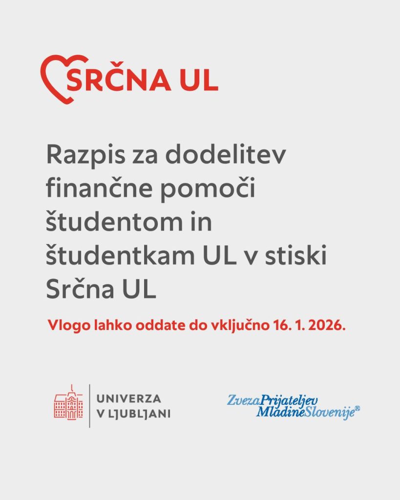 Zbrana sredstva bodo tudi letos podprla študentke in študente UL v stiski, ki lahko zaprosijo za pomoč v okviru razpisa, odprtega do 16. januarja 2026. VEČ O RAZPISU.