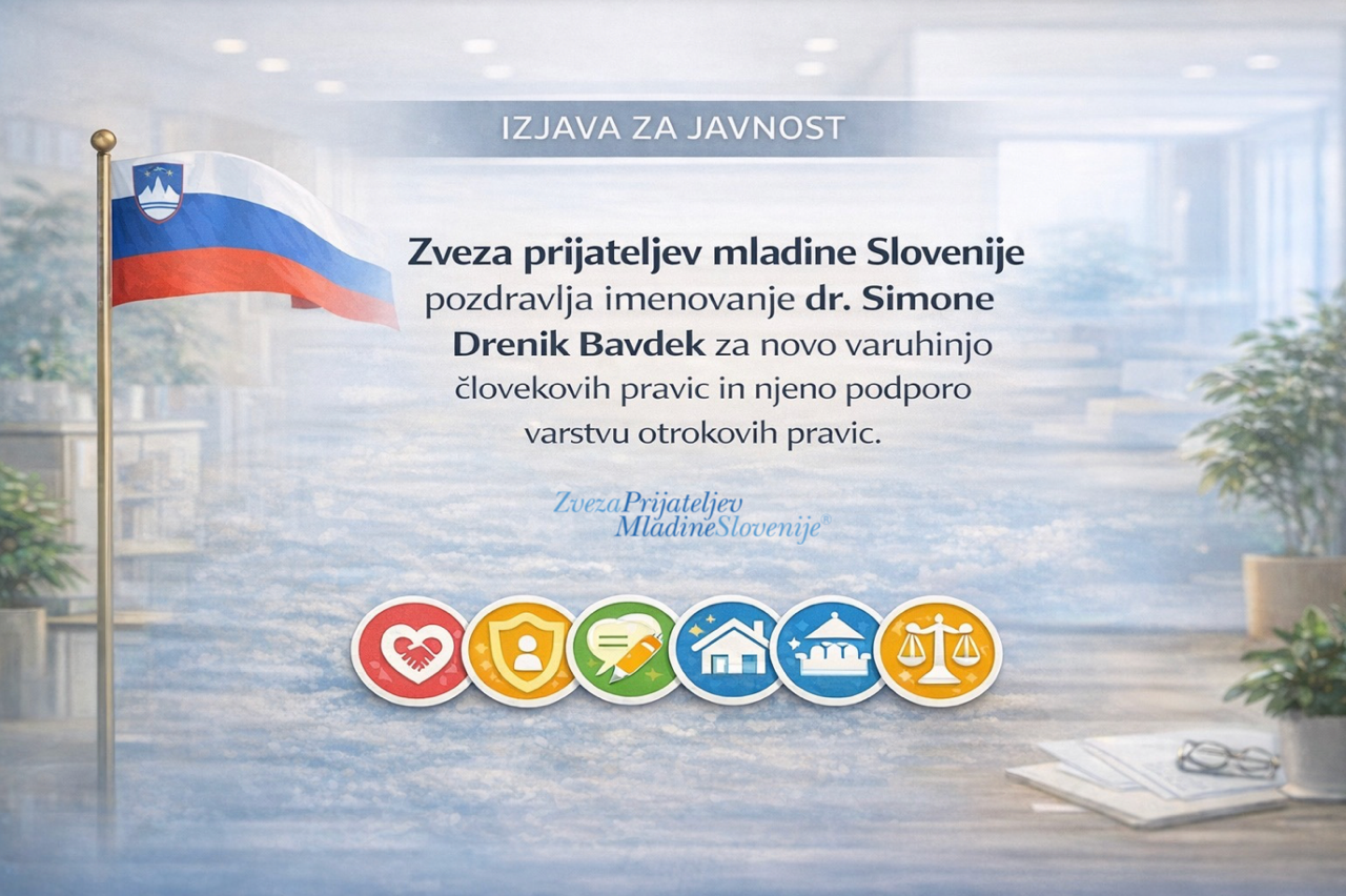 Zveza prijateljev mladine Slovenije (ZPMS) pozdravlja imenovanje dr. Simone Drenik Bavdek za novo varuhinjo človekovih pravic. Veseli nas, da funkcijo prevzema strokovnjakinja, ki razume pomen celostnega varovanja človekovih pravic ter posebej poudarja tudi potrebo po učinkovitem in sistemskem varstvu otrokovih pravic.