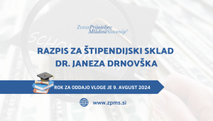 Odbor Štipendijskega sklada dr. Janeza Drnovška razpisuje 3 mesta za štipendije za šolsko leto 2024/2025. Rok za oddajo vlog je...