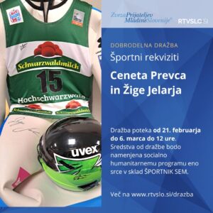 Skupaj z RTV Slovenija organiziramo dobrodelno dražbo, za katero sta svoje rekvizite prispevala orla Cene Prevc in Žiga Jelar. Na...