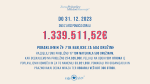 Obveščamo, da smo s pomočjo donatorjev – pravnimi in fizičnimi osebami zbrali 1.339.511,52€ za pomoč žrtvam letošnjih poplav.