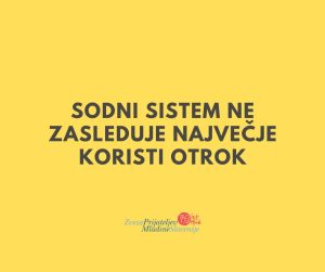 Sodni sistem ne zasleduje največje koristi otrok Nacionalni odbor za otrokove pravice, ki deluje v okviru Zveze prijateljev mladine Slovenije,...
