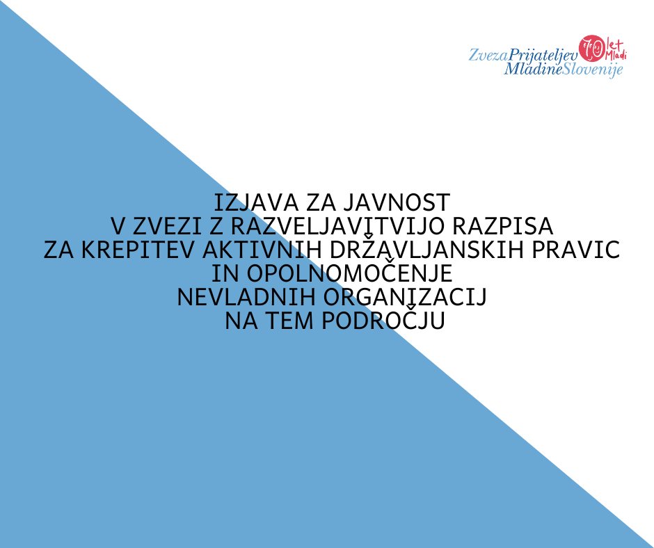 IZJAVA ZA JAVNOST V ZVEZI Z RAZVELJAVITVIJO RAZPISA ZA KREPITEV AKTIVNIH DRŽAVLJANSKIH PRAVIC IN OPOLNOMOČENJE NEVLADNIH ORGANIZACIJ NA TEM PODROČJU